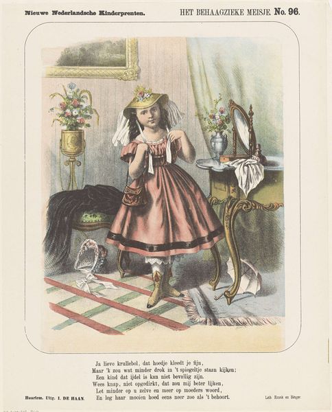 Curator: Here we have George Baxter's "I Don't Like It!", origin unknown, held at the Harvard Art Museums. Editor: Well, its sentiment is immediately clear! The face is a study in childish discontent. The whole composition feels stiff, almost stage-like. Curator: The title certainly informs our reading. It speaks to a universal experience, the struggle against the unfamiliar or unpleasant. The fallen bird may symbolize innocence lost, perhaps mirroring the child's own emotional turmoil. Editor: I’m more intrigued by the table setting—the teapot and glassware. The lines create a static tension, almost a grid, that traps the child in her displeasure. Is this a critique of domestic ritual? Curator: Perhaps. Or it could be that these are simply the props of childhood drama, the stage upon which her emotions play out. Editor: A compelling theory. This artwork, despite its seeming simplicity, does invite a deeper look at how structure and emotions interplay. Curator: Precisely. It holds a mirror to our own experiences, prompting us to consider the origins and expressions of our own dislikes.