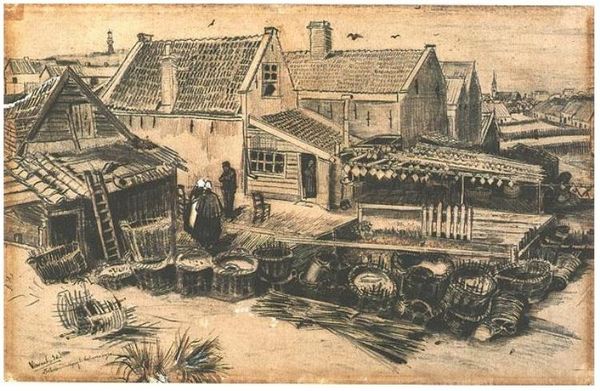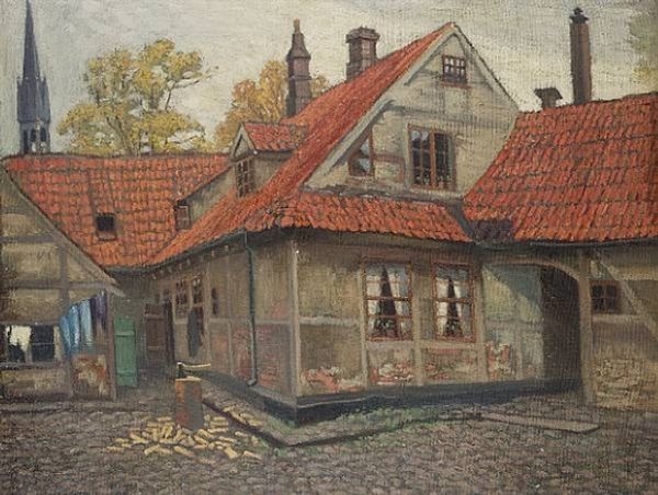 Mstislav Dobuzhinsky made 'Vilna. The old manor house on Tilto Street' with watercolour, and you can see how the medium itself seems to evoke a sense of memory and nostalgia. Look at the way Dobuzhinsky renders the rooftops with these washes of red, almost like faded memories. There’s something melancholic in the way the colours blend, as if time itself is dissolving the edges. The texture of the paper peeks through, giving the painting a light and airy quality. See that little figure pushing a wheelbarrow? It's almost as if it could be a ghost, or a memory. I think of someone like Edward Hopper, who also captured the melancholic beauty of urban life. But where Hopper is stark and precise, Dobuzhinsky is soft and dreamlike. Both artists, in their own ways, explore how places carry the weight of history. And perhaps it's in the ambiguity, in what's left unsaid, that the real magic lies.