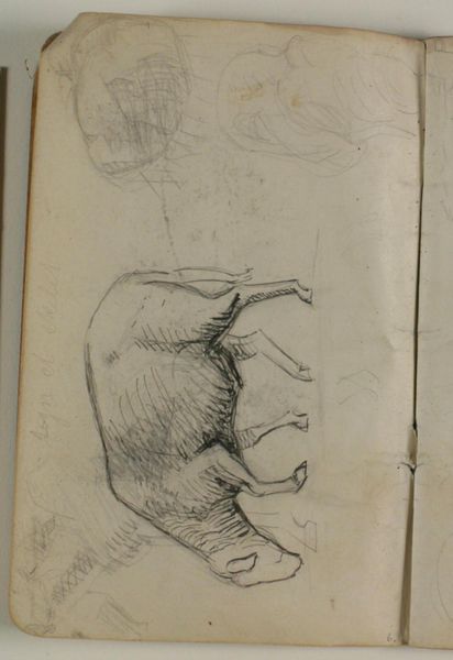 Curator: Niels Larsen Stevns' "Skitser af får," dating from around 1900 to 1905, presents us with an intimate glimpse into the artist’s process. Rendered in pencil, the sketch is held at the SMK, the National Gallery of Denmark. Editor: There's a wonderful, raw immediacy here. The soft graphite lends itself so well to capturing the gentle form of the sheep, the texture of its wool suggested with simple strokes. It feels honest and unpretentious. Curator: Precisely. It’s a look behind the curtain, seeing the labor involved in crafting an image. What interests me is how Stevns, though trained in academic painting, engages with a readily available, affordable material like pencil to study everyday rural life. It speaks volumes about accessibility and the democratisation of art production at the time. Editor: While the accessibility is an important aspect to consider, look at the modulation of light and shadow across the animal’s body, rendered with such subtlety using only line and tone. Stevns understood anatomy and employed the principles of realism here to capture its essence. He focused intensely on structure, form, and the physicality of the sheep. Curator: But what does it say about Stevns' engagement with the community, spending his time documenting rural labor and the animals that were so vital to the economy and life of everyday people? Think about the context in which this work was made, how such depictions gave value to aspects of society not often represented. Editor: Indeed, considering Stevns’ study as a preparatory exercise adds depth. This is realism filtered through keen observation, presented on an intimate scale with soft hatching for modelling form, prioritizing light and form within confined spatial terms. Curator: Agreed, the pencil lines breathe life into the sketch. Its inherent incompleteness suggests an invitation into the rural context of production itself, revealing its place within a much larger picture. Editor: Well, it’s certainly provided us a lens into his creative thought process and approach. I leave this piece appreciating both the craft, along with the inherent qualities.