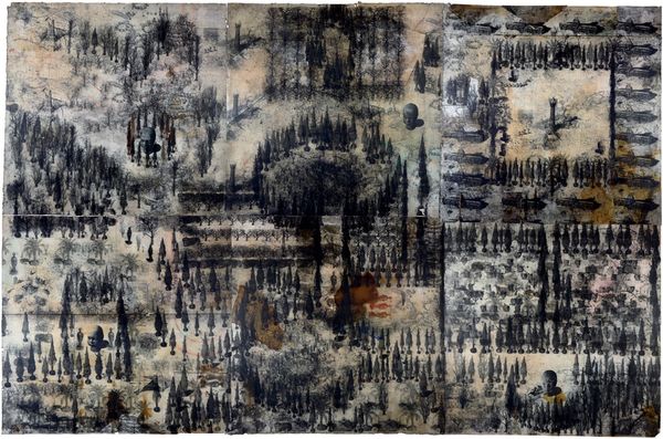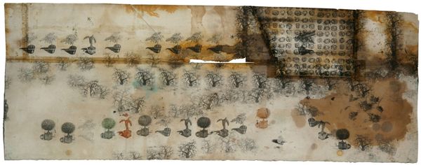 Pavlo Makov made this drawing called 'Square Alley', and looking at the surface, it feels like a map, or maybe a memory of one. There's a ghostly grid underlying the whole thing, like a structure trying to hold it all together. The marks are delicate, a bit like pencil, and washed over with a warm, aged tone that feels like you are looking at an old document. The eye drifts through a landscape of spindly trees and boxy buildings. Look at that dog cocking its leg in the upper left! It is funny, but it also makes me think about all the layers of seeing and knowing that go into making a place. This map doesn't feel fixed, more like a loose collection of details. Thinking of memory makes me think of Cy Twombly, but Twombly has more chaos and freedom in his work, where Makov has a sense of melancholy and structure. Art isn't about answers, but about embracing ambiguity.