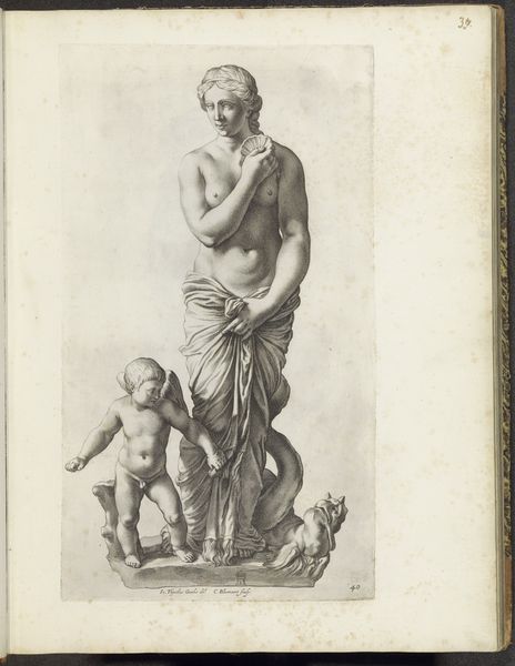 Cornelis Bloemaert made this drawing of a sculpture of Bacchus with a putto sometime in the 17th century in the Netherlands. It reflects the culture of classicism that prevailed in European art at the time. This aesthetic movement looked back to the ideals of ancient Greece and Rome, not only for artistic inspiration but also for moral and political guidance. Bacchus, the Roman god of wine, fertility, and theatre, was often associated with revelry and the subversion of social norms. The putto, a cherubic figure often seen in Renaissance and Baroque art, can be seen as an allegorical attribute to Bacchus, emphasizing the importance of pleasure. The Rijksmuseum, like many national museums, plays a role in shaping our understanding of Dutch cultural identity. By collecting and displaying works like this, they contribute to a narrative of artistic achievement and cultural heritage. The meaning of art is not fixed but is always shaped by the social and institutional contexts in which it is created and viewed. Art historians can explore this drawing further by researching Bloemaert's biography, the patronage system of the time, and the history of the Bacchus figure in art.