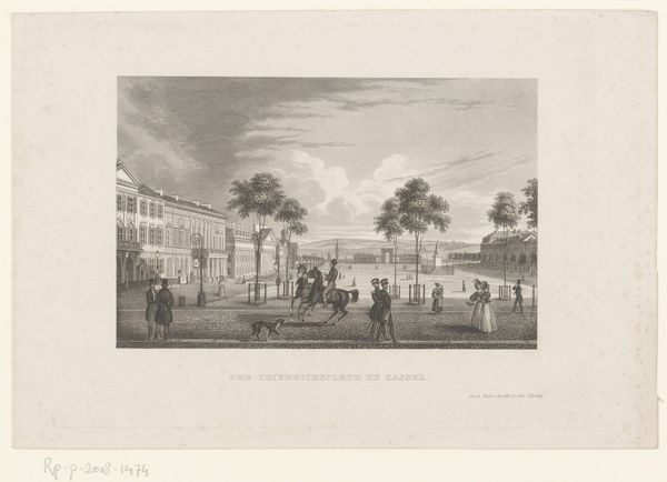 Editor: This is "Gezicht op de Singelgracht bij de Catharijnebarrière" by Pieter Wilhelmus van de Weijer, an etching from 1856. I'm struck by how this single print captures so many elements – the city, the water, and this burgeoning industrial presence. What catches your eye in this piece? Curator: It's that duality you mention, isn't it? The smokestacks rising against the leafy trees; it's like the old world reluctantly making way for the new. Makes you wonder what sounds filled the air. But I'm particularly drawn to the people, these tiny figures inhabiting this landscape of change. They're so detailed, especially considering they're rendered in print, yet they almost disappear within the larger scene. It feels both intimate and epic. Do you get a sense of the artist making a statement or just observing? Editor: That's interesting, I didn’t really think about that push and pull between progress and tradition! I originally saw the people more as a kind of... texture, I guess? Curator: Texture – I love that! Like notes in a musical score! Perhaps that’s the point: to show that the industrial revolution wasn't just about machines, but about reshaping human life itself. There's something poetic, almost bittersweet, about it. Like looking at an old photograph and knowing that those people’s entire worlds are forever changed. Editor: Wow, I never considered it that way. I’ll definitely be looking at the art differently from now on. Thanks so much for your insights. Curator: My pleasure! It’s in exchanging these thoughts that the piece truly comes alive for us, don't you think?