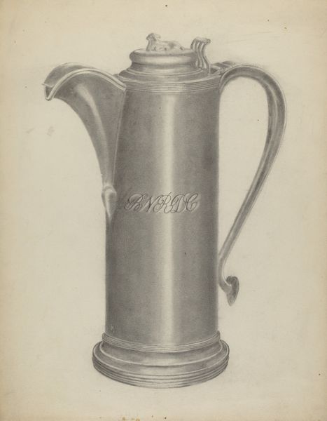 Charles Cullen made this drawing of a Pewter Flagon, sometime in his life between 1855 and 1995, using graphite on paper. It's all about tone, isn’t it? Look at the light, and how it describes the form. There's a real clarity in the way Cullen uses graphite, almost like he's caressing the surface to bring out the subtle sheen of the pewter. It's so delicate, yet there's a weight to it too, a sense of the object's presence. I love the way the handle curls, almost like a playful gesture, contrasting with the more rigid lines of the flagon itself. It’s this kind of tension that keeps me interested. You know, seeing this makes me think of Morandi and his bottles, or even some of those early modernist still lifes – a quiet exploration of form and space. Art’s just one long conversation, you know? A way of looking and thinking that keeps evolving, morphing, questioning.