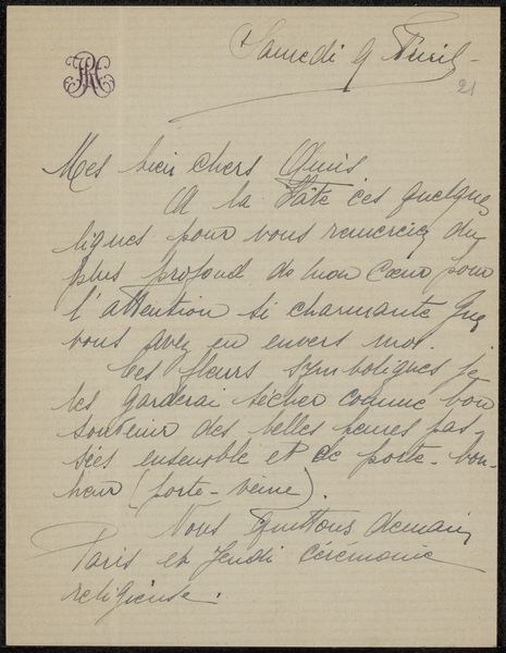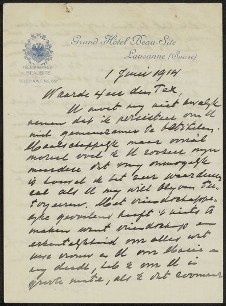 Curator: Isn't this “Brief aan Philip Zilcken” an enigma, an unfolded secret from, perhaps, 1901? Look at the swirling ink; it practically dances on the page. What does it whisper to you? Editor: It’s a letter, seemingly from John Wesley Beatty. I’m immediately struck by the formality of the tone, contrasting with the looseness of the script. There's almost a hurried intimacy, and...I’m unsure what it conveys beyond a polite exchange. What do you see in it? Curator: Beyond the surface, past the elegant “Carnegie Institute” masthead and that careful script, there’s longing. A hunger for connection. It makes me think, did Zilcken ever get those Mauve drawings? Imagine their colors gracing these halls... Beatty’s careful “plenty of time” suggests otherwise, don’t you think? It’s a delicate dance of expectation and veiled request. Editor: So, you read more than just a simple request, but a sense of longing. It makes me wonder what the unspoken part of this correspondence would be. It feels special, though, holding tangible communication like this – a piece of history so directly felt. Curator: Absolutely! To hold such intimacy, to glimpse into these forgotten interactions, well, isn’t it almost like stealing a glance at someone's soul? And what if those missing drawings hold the key to a mystery? It is a wonderful open letter and, well, what's more human than an answered correspondence and some missing masterpieces. Editor: I didn't initially see that yearning, that deeper level. Now, knowing the possible connection to a missing artist’s works definitely provides a fresh interpretation for me. It's like the ink holds stories that require us to listen closely. Thank you!