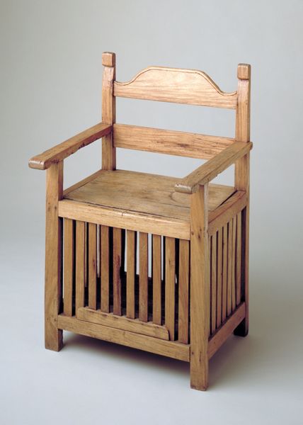 Editor: This is *Bench (Kapiya)*, crafted around 1880 by an anonymous maker, now held at the Minneapolis Institute of Art. It's a simple wooden bench. I find the scalloped trim surprisingly delicate against the roughness of the wood. What do you make of it? Curator: What immediately grabs my attention is its raw, unrefined construction. We must consider the tools used and the social context surrounding the maker. Was this piece intended for everyday use, or was its function more symbolic? How does the act of carving that trim interplay with labor practices during that time? Editor: Symbolic use? The rough material feels more practical than decorative. Curator: Indeed, but notice how the wood speaks to its local environment? Where did the wood come from? Who was involved in its production? I believe that, considering materiality allows us to rethink the very nature of "art" versus mere functional object. Can an object intended as mere furniture also possess artistry? Editor: I hadn't considered the origin of the materials themselves. Does knowing more about the bench's creation change how we value it? Curator: Precisely! The labour invested in its making elevates the value. We must challenge the boundary between 'art' and 'craft,' by acknowledging that even utilitarian pieces bear the stamp of the maker's hand and their environment. Each carved detail holds more information. Editor: So by examining the wood, the tools used, and the process of creation, we can gain a deeper understanding of the maker and their world? I appreciate learning how to interpret artwork in a whole new way. Curator: Absolutely! It reframes art appreciation as a conversation with not just the artwork but also with a bygone society and its means of production. A fascinating method!
