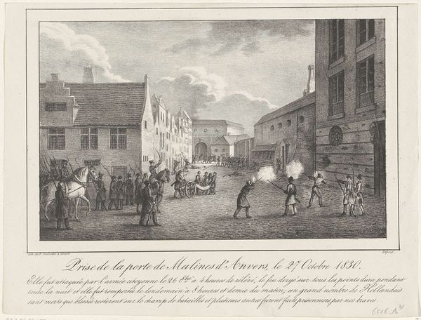 Paulus Lauters created this print, depicting the entry of Dutch troops into Brussels through the Porte de Schaerbeek, in 1830. It offers a window into the complex social and political landscape of the time. The image captures a pivotal moment during the Belgian Revolution, a period of upheaval against Dutch rule. By focusing on the military presence in the city, Lauters evokes a sense of tension and the imposition of authority. It encourages us to consider the power dynamics at play between the Dutch government and the Belgian population. The print also serves as a reminder of the role of art in shaping public opinion and historical narratives. To fully understand its significance, we can consult archival sources, historical accounts, and analyses of the Belgian Revolution to contextualize Lauters's depiction within the broader social and political landscape of 19th-century Europe. By doing so, we gain insights into the ways in which art reflects and shapes our understanding of history.