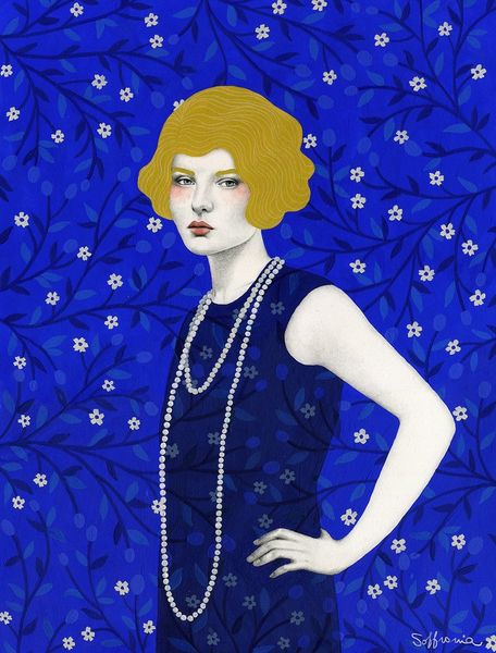 This is Sofia Bonati's "Florence," a work created sometime in the 20th century. The pearls around her neck stand out, don't they? Often seen as symbols of purity, they have a rich past, from ancient adornments signifying wealth to modern symbols of elegance. Consider Botticelli's Venus. The goddess often emerges from a pearl-bearing shell, an emblem of feminine perfection and new beginnings. Yet, fast forward, and we see pearls adorning flappers of the Roaring Twenties—a symbol of rebellion against tradition, of modern womanhood. These pearls, though beautiful, can evoke a sense of constraint. Notice how they encircle the neck, almost like a delicate shackle. Is this a reflection of societal expectations? A silent echo of past constraints versus newfound freedoms? Like a snake eating its own tail, this motif returns, each time with a new significance. It shows the cyclical nature of symbols, forever intertwined with the human psyche.