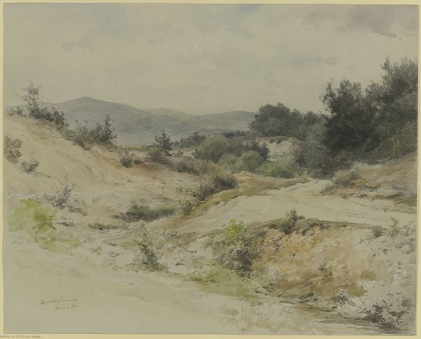 August Lucas’s “Weite italienische Gebirgslandschaft mit Olevano” is an early 19th-century watercolor on paper, a medium that lends itself to portability and immediacy. The washes of color capture the Italian landscape in soft, muted tones, reflecting the inherent qualities of the watercolor. The process involves diluting pigments with water, allowing them to blend and flow across the paper's surface. This technique emphasizes the natural textures and forms of the landscape, such as the foliage, hills, and sky. Lucas likely sketched the composition on-site, then added layers of transparent washes to build depth and atmosphere. The immediacy of watercolor allowed him to quickly capture the changing light and weather conditions. Watercolor was a popular medium for landscape painters due to its affordability, portability, and ease of use. It allowed artists to create detailed and evocative images of the natural world. Understanding the materiality and process behind this watercolor helps us appreciate Lucas's skill in capturing the essence of the Italian landscape. It also challenges the traditional hierarchy between preparatory sketches and finished paintings.