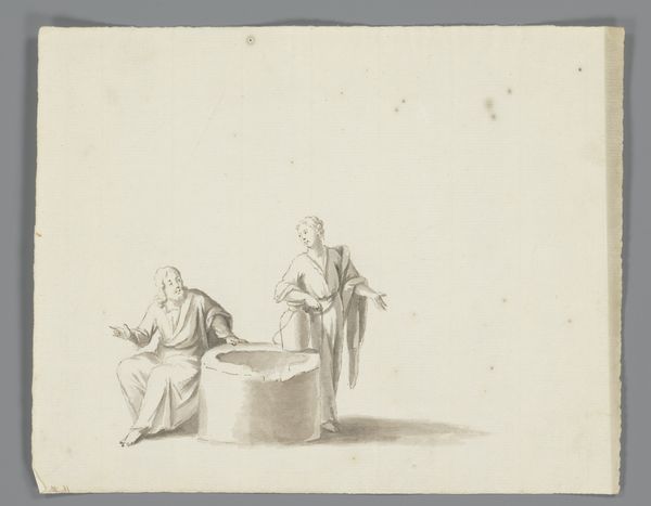 Etienne Jeaurat made this drawing, "Study of Two Women", sometime in the 18th century. Jeaurat lived in an era where French society was highly stratified, with rigid class distinctions influencing daily life and artistic representation. The artwork offers a glimpse into the lives of working-class women, a group often overlooked in the art of his time. One woman is standing with her hands on her hips, exuding a sense of self-assuredness. The other is seated, perhaps in a moment of rest. The sketch avoids idealizing its subjects, instead presenting them with a directness that feels quietly revolutionary. Though simple in composition, this study reflects the complex social dynamics of 18th-century France, where gender and class determined one's place in society. The drawing invites us to consider the everyday experiences of women whose stories might otherwise be lost to history.