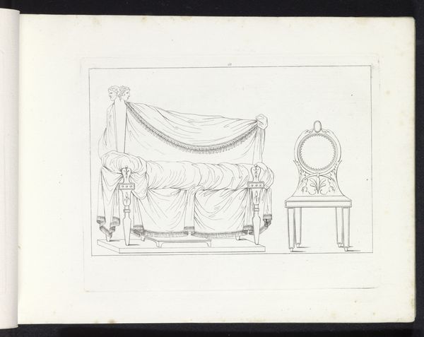 Pietro Ruga made this drawing of a bed for a wall with drapery with pen in ink. Here we see the artist's vision of private domestic space. Although the artwork is undated, its clear references to Greco-Roman classicism situate it in the late 18th or early 19th century, during the height of Neoclassical enthusiasm in Europe. Note the carved pilasters, the symmetry of the composition, and the emphasis on line over color. All of these elements show the desire for a return to the perceived simplicity and elegance of the ancient world. It's no accident that such an aesthetic flourished in tandem with the rise of democratic republics in the West. The leaders of these new republics consciously identified with the republican ideals of ancient Greece and Rome, and they sought to emulate the art and architecture of those cultures. To learn more, we might consult period publications on interior design and social history, looking for clues about the intended function and meaning of spaces like these.