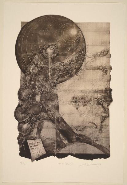 Francis Sumner Merritt made this print, 'Maelstrom', in 1943. It's all about process, I think, the way those marks build and swirl. I love how Merritt’s marks on the stone pull us into the center of the vortex, a dark void where it feels like everything is being churned and transformed. Look at how the figures are caught in this cosmic blender, their bodies contorted, limbs flailing. The texture is rough and raw, like the world is being torn apart and put back together at the same time. The etching has this urgency, like the artist couldn't wait to get it all down, a direct translation of feeling. It reminds me a little of Goya's dark visions, that sense of the world turned upside down and inside out, but with Merritt’s own unique spin. It’s a reminder that art doesn't need to be neat and tidy to be powerful.