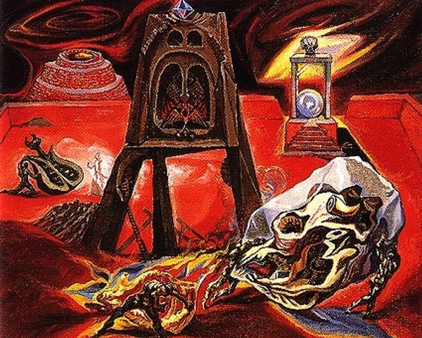 Remedios Varo painted "Premonition," an enigmatic scene, rich with the symbolic language of alchemy and the occult, though its date is unknown. At its heart lie the figures draped in white robes, their forms elongated and ethereal, pulled by the threads connected to the mechanical contraptions looming overhead. These threads, like the threads of fate spun by the Greek Moirai, suggest a preordained path. We see a visual echo of these threads in classical and renaissance art. Think of how they're used to depict connections between celestial bodies and human destiny. Here, however, the threads are not spun by gods, but by cold, impersonal machinery, reflecting an anxiety about technology's control over human destiny. The alchemical symbolism embedded within the towers and the machinery evokes not just transformation, but also control. The alchemist’s quest was one of spiritual purification as well as material transmutation. The checkered floor is reminiscent of the Masons and their lodgings. Varo invites us to consider the tension between free will and determinism. In its intricate symbolism and unsettling imagery, this artwork engages with collective memory, tapping into deep-seated fears and aspirations about the nature of existence itself, and the hidden forces that shape our lives.