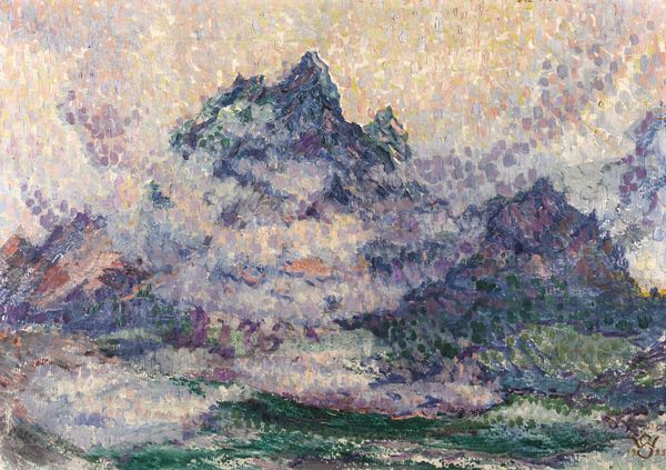 Curator: Standing before us is Claude Monet's "Stacks of Wheat (Sunset, Snow Effect)," painted in 1891. It currently resides here at the Art Institute of Chicago. What are your initial thoughts? Editor: It's strikingly muted, almost monochrome. The palette leans heavily into blues and pinks, casting a tranquil yet melancholic atmosphere over the scene. The brushstrokes, particularly on the haystacks themselves, give a sense of texture that's almost tangible. Curator: Monet's series of "Haystacks" paintings are fascinating examples of plein-air painting. They reflect the radical politics of impressionism, in the sense of removing the studio from the artistic process, bringing artwork directly into the sphere of the public, the every day. Consider this: Monet rented a room specifically to capture these scenes at different times of day and under various weather conditions. It became almost an obsession. Editor: An obsession that translated into an acute awareness of the mutability of the landscape. The paintings aren’t merely records of haystacks, they are studies on the fleeting nature of light and how it fundamentally alters our perception. The socio-economic backdrop also begs consideration; such an agricultural subject would undoubtedly carry weight for those whose livelihoods depended on the land. Curator: Precisely. The impressionists were revolutionary in how they rendered the everyday and celebrated aspects of modernity. He uses the impasto technique, building up thick layers of oil paint. These rough brush strokes aren’t just about aesthetics, are they? It’s an experience for the viewer’s eye, recreating Monet's subjective experience. Editor: Yes, and one wonders about his intentional use of such thick applications, suggesting the heavy burden of those dependent on successful crops. Are those wheat stacks symbols of wealth, or perhaps monuments to backbreaking work, rendered even more isolating by winter's harsh touch? There is also an inherent issue of class involved. Monet was from the middle class, with resources and opportunities generally out of reach to the average agrarian worker, and those dynamics affect this artistic viewpoint. Curator: Interesting how an image so focused on the transient and atmospheric can carry so many layers of social meaning! Considering this landscape through Monet's radical impressionist lens, and then considering those same scenes of manual labor though the eyes of those dependent on their crop yield, is truly what these images are still useful for today. Editor: I agree. It is art that acts as a cultural mirror and lens to deepen not just how we understand artistic method, but life during the Third Republic.