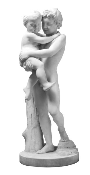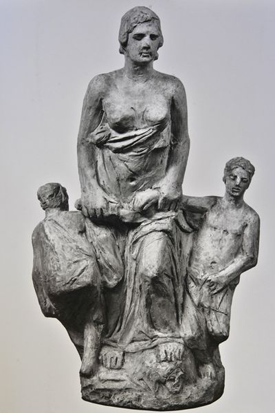 This is a marble sculpture made by S.C. Stanley, likely sometime in the mid-18th century. The sculpture presents Diana, the Roman goddess of the hunt, accompanied by her dog. The texture of the marble gives the figures a smooth, almost polished appearance, which invites a tactile response even as it remains untouchable. Formally, the sculpture employs a classical contrapposto, with Diana's weight shifted onto one leg, creating a dynamic, sinuous line through her body. The draping of the fabric is strategically arranged to both reveal and conceal, adding a layer of complexity to the visual experience. The dog, positioned beside her, not only serves as a symbol of her fidelity but also provides a contrasting texture to the smooth marble of Diana's skin. The work destabilizes the traditional representation of power, typical in the baroque era, by presenting a deity in a moment of quiet companionship rather than overt authority. It encourages us to rethink the boundaries between the divine and the earthly.