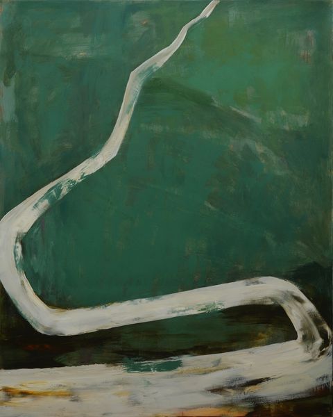Curator: Looking at this work, I feel... almost dizzy. It's like staring up at a sky that is too bright and too dark all at once. The high contrast certainly gives me vertigo. Editor: We're looking at "Stern", a 2004 acrylic on canvas piece by Marlene Dumas. I think that sense of disorientation you feel is quite potent; the upturned face, the stark contrasts... it suggests a confrontation with something immense, something perhaps terrifying, even. Curator: Immense and terrifying—yes, and vulnerable. The exposed throat, the almost aggressive upward gaze... It's like being asked to witness something incredibly intimate, yet simultaneously confronting a power dynamic, too. Maybe like watching a lamb staring down a slaughterhouse? Editor: I can see that reading. Dumas's work often explores these complexities of vulnerability and power, particularly concerning the female form. In many ways, her stark palette and somewhat smeared style serves to undermine conventional beauty standards, but that only makes it harder to look away from what feels urgent. Curator: The looseness is what fascinates me most, I think. It could be unfinished, accidental almost, yet so considered. That deliberate imperfection. Do you think it reflects her views on identity itself as fractured? Editor: Definitely, because what she is highlighting in "Stern", amongst others, is the fractured, complicated self. Identity as a construction that is constantly being reshaped. Her color palette itself feels political, with the dark shades seemingly about to drown the white expanses in the portrait. The expressionistic style then feels less like just a 'choice' and more like a purposeful intervention, a breaking away from imposed conventions. Curator: It leaves me thinking, perhaps inevitably, of all the historical power imbalances that have dictated the presentation of female identity. Thank you, Marlene Dumas. Editor: Precisely. By leaving it open to our gaze, the artist urges us to interrogate not just what we are seeing, but *how* we are seeing and from what vantage point. Food for thought, indeed.