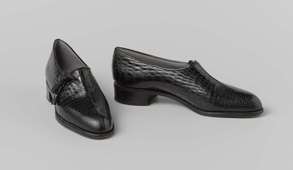 These shoes, crafted by Maison Vermin, are made of black calf leather, and embellished with white cotton stitching on the forefoot. The shoes were likely manufactured using a combination of handcraft and industrial techniques. The leather has been carefully shaped and stitched to create a sleek, elegant form. The use of leather reflects its inherent qualities of durability and flexibility, which have been valued for centuries in shoemaking. The refined stitching showcases the skilled labor involved in their production, while the band closure adds to the sophistication of their design. Fashion items like these embody a complex set of relationships between labor, materials, and consumer culture. Maison Vermin was a luxury brand, and the shoes probably reflect the desires and aspirations of a particular social class. By considering the materials, processes, and social context of these shoes, we can gain a deeper understanding of their cultural significance.