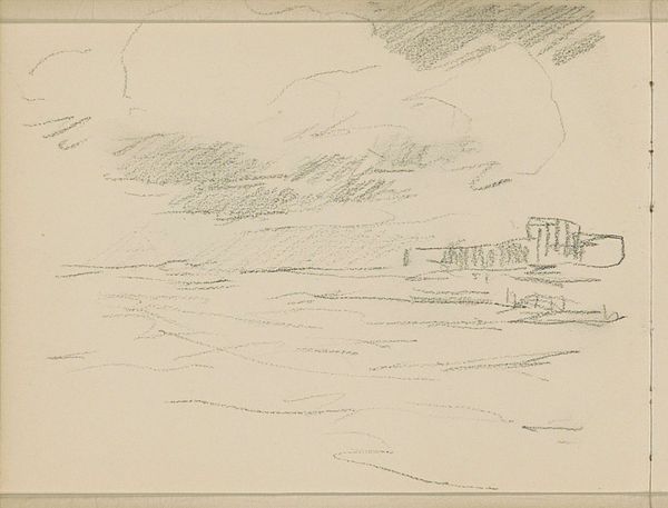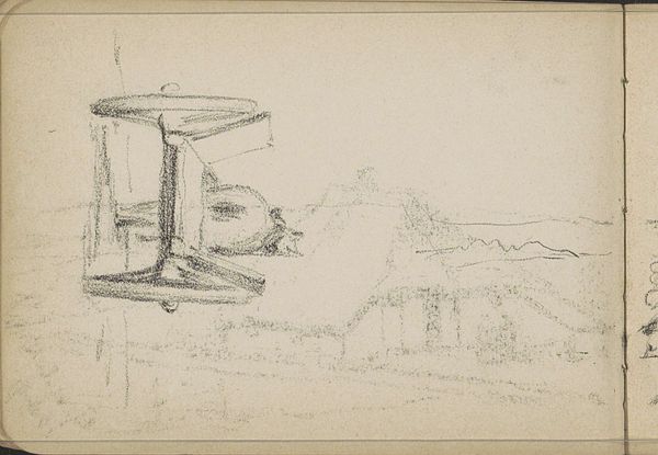 Editor: This drawing, “Vliegtuig van de gebroeders Wright in vlucht,” made before 1913, depicts the Wright brothers' plane in flight using pencil on paper. It has this postcard aesthetic and the landscape feels both innovative and a little dreamlike. What do you see in this piece, and how does it speak to its time? Curator: This image, with its delicate lines, offers us more than just a record of early aviation. The pencil medium itself is key. Pencil allowed for accessible representation during a time of immense societal shift. We see an attempt at documenting technological advancement and also a desire to make that progress more palatable. Editor: Palatable how? Curator: The very act of creating an easily distributable image makes progress feel more communal. We see that further emphasized by the stamp—art becomes a kind of propaganda. What do you make of the forest depicted at the bottom of the postcard? Editor: Well, to me it creates a strong contrast. Nature versus technology...almost like it's emphasizing man's conquest. Curator: Exactly. Think about the political and social implications of ‘conquering’ the sky. Air travel opens possibilities for trade, exploration, and, of course, warfare. It becomes an act of claiming space, literally and figuratively, especially when linked with colonialism at the turn of the century. It mirrors broader power structures already in play. Editor: That makes sense. I hadn’t thought about it in terms of spatial conquest. Curator: Considering this work alongside discussions of technology, power, and representation truly reveals the intersections within art and social progress, and, indeed, regression. Editor: It’s amazing how much one can unpack from a simple pencil drawing. Curator: Precisely. The drawing gives us both an object for the popular consumption of technology, and also shows a piece with deep cultural impact.