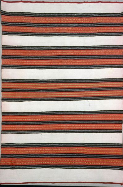 Curator: What strikes you first about this textile piece? I find it immensely inviting. Editor: Well, I’m drawn to the repeated motifs. Zigzags, swirls, dots – they create a rhythmic visual experience that’s almost hypnotic. There's a real vibrancy there in how the patterns interact. Curator: That's a great observation. The artwork is called “Skirt”, a textile made in the mid-20th century by an unknown artist from Shan. You can find it here at the Minneapolis Institute of Art. I think it embodies the essence of the Pattern and Decoration movement, where art was meant to blur boundaries between art and everyday life. It is so interesting, since art usually holds itself so separate. Editor: I see that now! It uses cotton and silk; such humble materials elevated through this intricate design. The warm color palette – predominantly shades of red and orange – is carefully placed, and it lends the entire work a certain visual warmth. I want to examine how those colors and forms reflect Shan aesthetics and even politics during this era. Curator: Absolutely, how the social and political contexts shape the creation of such a personal object. I see it also as part of a longer history of textile production in that region, connecting individuals to wider markets and networks. How might a garment such as this play a role in gendered power dynamics within the society it came from? Editor: Those layered meanings of form and color truly add a whole new layer to interpreting the garment as more than just clothing; instead, it’s a statement. A potent cultural object communicating something far beyond decoration. Curator: Looking closer and reading between these repeated symbols allows you to reflect not only on visual culture but to gain understanding of the dynamics, social hierarchies, and complex meanings interwoven within daily life. What a clever garment! Editor: Indeed, a stunning piece that sparks so many ideas when considered through both our distinct viewpoints. I now look at the image so much more richly.