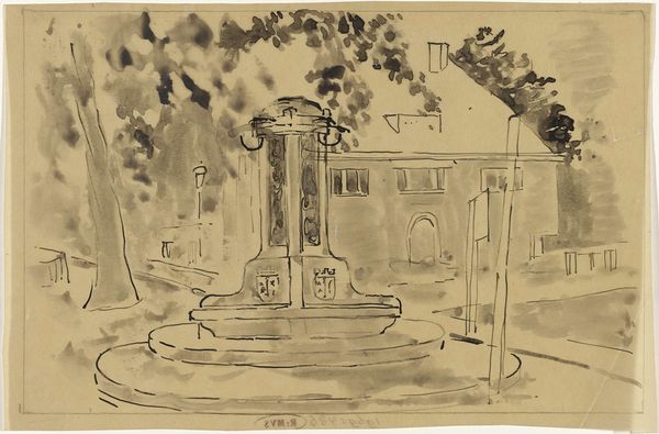 Editor: This is "The Edison Cinema," created by Alfred Freddy Krupa in 1992, using ink on paper. I’m struck by the starkness of the ink; it creates this imposing almost desolate cityscape. What's your take on this piece? Curator: I focus on how this work reflects the social conditions of its creation through its materiality. Ink, traditionally used for documentation and reproduction, is here deployed to capture a scene—a cinema. What does the choice of such a commonplace material say about Krupa's view of artistic labor and the value placed on the depicted subject? Editor: That's interesting. I hadn’t considered ink beyond its simplicity and how that contributes to the bleak mood. How does the context of the early 90's factor in? Curator: Consider the shift in artistic production following the collapse of certain socio-political structures in Eastern Europe during this period. How might the relative accessibility of ink and paper—compared to more ‘precious’ materials—influence artistic choices? Does it democratize art-making, and does this then reflect back onto the depiction of an 'Edison Cinema,' potentially linking to mass media and consumerism? Editor: So you’re saying the choice of material challenges this romantic view of art? By using just ink and paper, is he leveling high art with the everyday experience of going to the movies? Curator: Exactly. And we have to think about how Krupa's process might challenge the existing class-based consumption and traditional notions of artistic production at that time. What’s intriguing to you about the medium considering he chose cityscape abstraction? Editor: I see how the materiality pushes back on traditional boundaries and gives me more insight into that period and his method. Thanks for showing me the connection! Curator: The connection between material and subject helps to re-evaluate the artist's choices of representation within wider contexts of culture and economy. It's been insightful to discuss with you, too.
