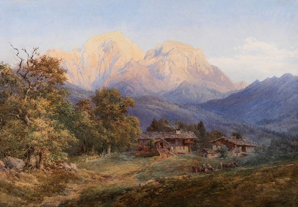 Curator: Let’s consider Albert Bierstadt’s oil painting, "Long's Peak, Estes Park, Colorado." This landscape piece aligns strongly with the Hudson River School and demonstrates key elements of Romanticism and Realism, typical of his practice. Editor: The sheer scale of the landscape practically overwhelms you, doesn't it? I feel like I could almost step into that valley. There's something so…inviting about the space he’s captured. It feels familiar even if I've never been there. Curator: The invitation is definitely deliberate, yes, but to examine it more closely, we must also look at Bierstadt’s historical context, one deeply interwoven with American expansionism. Landscapes, particularly in the West, played a significant role in shaping perceptions about land use and territorial claims. Editor: So it's not just pretty scenery. Hmm. Still, you can't deny the incredible detail, can you? Look at how the light filters through the trees. Or the almost shimmering surface of the water, there's something very spiritual about that quality of light. It’s not just landscape, it's *soulscape*. Curator: It’s a romanticized version, to be precise. In Bierstadt’s era, images such as these helped justify manifest destiny – the conviction that US expansion throughout the Americas was both inevitable and justified. These paintings obscure both the brutal displacement of Indigenous populations and the devastating environmental impact that accompanied westward expansion. Editor: Gosh, that gives you pause, doesn’t it? Now, I can't unsee it! But despite that knowledge, that slight unsettling truth that’s revealed about its context… I still admire the pure artistry involved. I'm left feeling very conflicted. Curator: That feeling is appropriate because recognizing that complicated history is key. Appreciate the mastery while examining how it has promoted dangerous socio-political narratives, then and now. Editor: Art that makes you think, even when it unsettles. Curator: Indeed, and perhaps re-think your own perceptions.