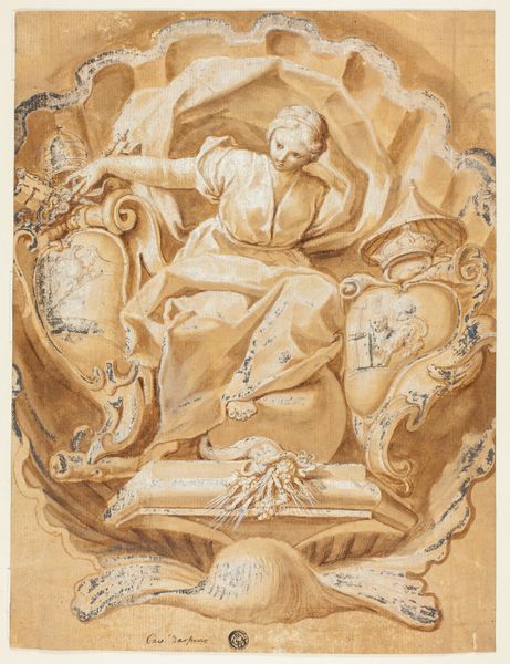 Hans Jakob Dünz created this drawing of the Murer family crest around 1600, during a time of significant social stratification. The drawing reflects the values and aspirations of the Murer family, who belonged to the upper echelons of society. It's interesting to consider the symbolism embedded within the crest, and the portrait of the male figure, which visually communicates power, lineage, and status. The family's coat of arms and other heraldic symbols suggests an effort to legitimize and perpetuate their legacy. At the same time, the family's desire to maintain their position speaks to the anxieties of the time, as social mobility was limited, and status was closely guarded. The drawing serves as a window into the intricate dynamics of identity, power, and social hierarchy that shaped the lives of families like the Murers. It prompts us to consider how they navigated the complexities of their time.