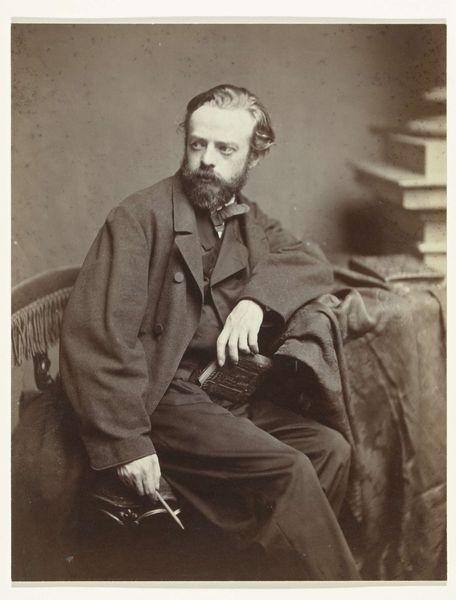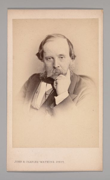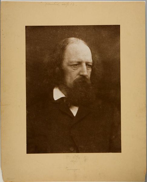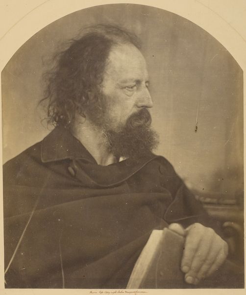 Editor: This gelatin silver print, “Unknown Sitter,” was taken by Julia Margaret Cameron sometime between 1868 and 1874. I'm struck by how soft the image is, almost dreamlike. What can you tell me about it? Curator: It's crucial to consider the materials and processes at play here. Cameron's deliberate manipulation of photographic techniques—her focus, the long exposure times, the developing process – moved photography away from purely mimetic reproduction. Editor: So, it’s more about her choices regarding production, less about perfect representation? Curator: Exactly! Think about the availability and cost of photographic materials at this time. Who had access to this medium, and what did that say about the social and economic context? Photography was rapidly evolving, yet portraiture largely remained the domain of the middle and upper classes. How did these social dynamics shape the artistic choices Cameron was making? Editor: That makes me think about the sitter too. We don’t know who he is, but he has a thoughtful pose and seems part of that social sphere because he had access to that technological moment. Curator: Precisely! And consider the labor involved, not only Cameron's, but the production and distribution of the materials themselves. Photography relies on both technological advances and the material realities that structure who can produce and consume it. This piece reflects those conditions and how it may challenge those limitations at the time. Editor: I never thought about photography in terms of labor and class like that. Curator: Examining art through its materiality offers a powerful lens to understand the complex forces shaping its creation and reception. Editor: Definitely! Looking at “Unknown Sitter” now, I see a record of social relations materialized through artistic process and production. Thanks for pointing that out!