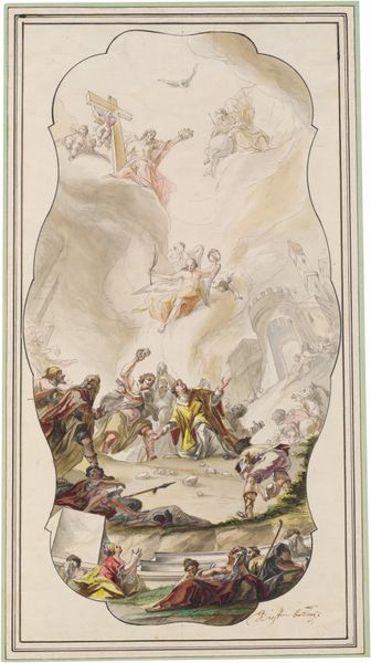 "Chiesa dei Cappuccini Parma" is a watercolor and pen artwork by William Kent, an English artist who lived in the 18th century. Kent spent a decade in Italy studying art, architecture, and design, absorbing the aesthetics of the Italian Renaissance and Baroque periods. Here, we see a scene depicting Saint Fidelis of Sigmaringen. He was a Capuchin friar who was murdered for his faith in 1622 during the Counter-Reformation. This work captures an intensely spiritual and emotional scene, marked by the expressions of grief and the glorification of martyrdom. Saint Fidelis is surrounded by mourners and angels. The use of light and shadow enhances the drama, emphasizing the transition from earthly suffering to divine glory. Kent's piece reflects the cultural and religious tensions of his time, as well as the ongoing dialogues between faith, power, and identity. It shows a moment in history where religious identity was a matter of life and death.