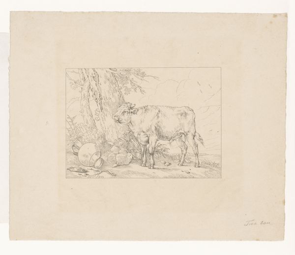 This delicate drawing was made by Adam von Bartsch in the late 18th or early 19th century using pen and brown ink. It depicts a rustic scene: a donkey standing over a sleeping man and a dog. But what can we learn about the society that produced it? Bartsch was the director of the Imperial Print Collection in Vienna. This was an institution dedicated to preserving and classifying prints, and his role there gave him a unique perspective on the history of art and printmaking. Drawings like this one, though seemingly simple, circulated amongst collectors and connoisseurs who valued the skilled draftsmanship. The image taps into a tradition of pastoral imagery that idealizes rural life, but there is something knowing in the way Bartsch depicts this scene. The sleeping man and the weary donkey might be a subtle commentary on the social realities of labor and leisure. To fully understand the meaning of the drawing, we can look into Bartsch's writings and the inventories of collections from the period. These sources help us understand the cultural values of the time and the role that art played in shaping them.