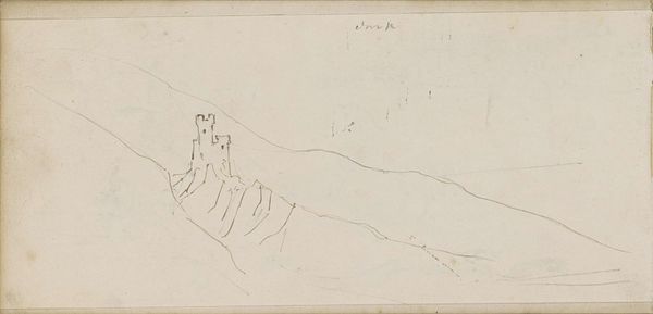 Curator: Alexander Cozens’ delicate wash drawing, titled "The Brow of a Hill," presents us with a minimalist landscape captured with remarkable economy of line. Editor: My first impression is of quiet solitude. The sparseness evokes a sense of stillness, like a moment suspended in time. Curator: Notice how Cozens uses the barest suggestion of form to create depth. The linear structures invite us to contemplate nature through very basic means. Editor: The hill brow itself, rendered as a threshold, it could be interpreted as a symbol of transition. Cozens, with his symbolic language, taps into a universal longing for peace. Curator: But isn’t its emotional power more derived from its compositional rigor? The strategic placement of these minimal elements grants the drawing a remarkable visual balance. Editor: Perhaps. But for me, the drawing goes beyond mere formal arrangement; the brow symbolizes an outlook, a state of hope. Curator: It is fascinating how such formal elements can carry so much cultural meaning, depending on one’s vantage. Editor: Indeed, it seems Cozens' sketch leaves us both with something meaningful to ponder.