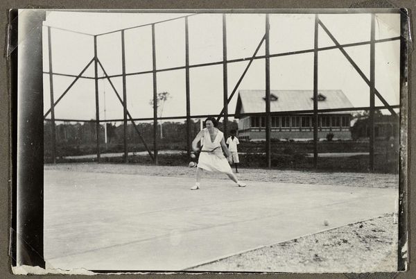Curator: "Hockeyende leerlingen van Schule Schloss Salem," a gelatin-silver print from around 1929... What strikes you about it at first glance? Editor: The air. It feels charged, almost crackling, even though it's a still photograph. There’s something in the composition, the grey sky, that makes you sense movement and energy despite the antiquated material. Curator: Indeed. Think about the labor and chemistry required to produce this image! From preparing the gelatin emulsion to meticulously coating the glass plate or film base and all the work required to then produce this print... It's a far cry from our instant gratification. It also speaks volumes about the institutional culture and its means of documenting itself and crafting its image, literally and figuratively, to project power and success. Editor: It’s funny how those values—the photographic labor, the documentation—contrast with what looks like joyful play, however structured. Do you know much about the setting of this shot? Curator: The Schule Schloss Salem was an elite boarding school in Germany founded after World War I. It aimed to cultivate future leaders, emphasizing physical activity alongside academics. This hockey game was part of that agenda. Editor: So, we're not just seeing a game; we’re witnessing a system in action. How social class impacts accessibility to materiality and photographic technology but also what leisure and self-expression could look like... It really exposes this intersection. The uniformity of dress suggests not only conformity to institutional standards but also how material availability or standardization shapes culture. It is difficult to imagine that students may not even have possessed an individual outfit. Curator: Exactly, and if we delve deeper into German Expressionism, of which this image presents echoes in tonality and atmosphere, it's remarkable how they were exploring emotional depths with accessible means. Editor: The photo feels… spectral. Almost dreamlike, capturing a kind of fleeting, collective action, but in this solid material way. Curator: It's beautiful how a physical object created so deliberately—gelatin and silver transformed through light—captures such ephemeral qualities. Thank you, this insight will really impact how people will view it. Editor: Of course. The material offers more than just an aesthetic experience, but it becomes evidence of time, labor, and a very specific socio-political context. A rich record for viewers!