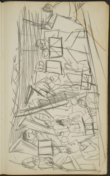 This is Max Beckmann's sketch, "Nocturnal City Scene," created sometime before 1950. Beckmann, living through both World Wars, saw his work labeled as degenerate by the Nazis, and this experience profoundly shaped his artistic vision. The sketch presents a fractured urban landscape, a jumble of lines and geometric shapes. It reflects the emotional and physical fragmentation experienced by many during the tumultuous early 20th century. The scene evokes a sense of alienation and disorientation, mirroring the artist's own displacement and sense of being an outsider. Beckmann once said, "What I want to show in my work is the idea which hides itself behind so-called reality." Consider how this sketch, with its stark lines, captures not the literal city, but the hidden anxieties and realities of urban life. It speaks to the broader societal issues of displacement and the search for identity in a world that often feels chaotic and incomprehensible.