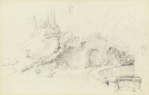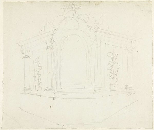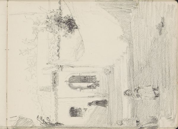 Curator: What we have here is a quick study, a pencil drawing titled "Veld met korenschoven," or "Field with Corn Stooks," by Maria Vos, dating from around 1863-1864. Editor: It looks almost… ephemeral. Light, very preliminary. It’s like catching a fleeting impression of something. Curator: Exactly! It's definitely not a finished piece; more likely a page from a sketchbook. You can see the artist was interested in capturing the basic shapes and light effects on the stooks of wheat or hay, probably in preparation for a larger work. Note how she focuses on the mass of the stooks against the field. Editor: It’s interesting how she simplifies the forms. There’s very little detail. It makes me think about the economics of farming at the time, the labor involved in gathering and stacking the harvest. This drawing feels connected to the material realities of agricultural life in the 19th century. What role does such imagery play in building notions of "Dutch" identity and rural life for the period? Curator: That's an excellent point. Images like this contribute to the romanticization of rural labor while often glossing over the harsh conditions. Though, as an initial sketch, one might hesitate to lay too much weight on the imagery. Editor: Maybe, but even an initial sketch has embedded values. Look at the way the scene is framed; the level of visual extraction involved when rendering labor like this… I'm suspicious! What audience is anticipated for a quick and cursory artwork that captures work in progress, and to what extent is the material reality being faithfully presented to them? Curator: I see your point! Perhaps this also relates to the artist’s social position – how did that permit or restrict depictions of certain content matter and production values? Editor: It makes you wonder, doesn't it? Art never exists in a vacuum. This sketch gives us more than just a glimpse of the artist's hand; it offers us a portal into broader socio-economic relationships and cultural ideals as well. Curator: Precisely, and understanding the artist's methods and material choices offers so much information as to this wider perspective, it feels indispensable when considering art through the ages.