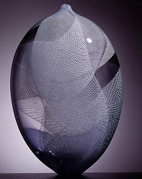 Editor: This is a glass platter, dating from around 1870 to 1890, created by Challinor, Taylor and Company. I find the swirling black and white glass quite mesmerizing, but also somewhat obscures the central image. What do you see in this piece? Curator: The obscurity is part of its allure. It isn’t just a decorative plate; it's a captured moment, frozen in time. The black and white swirling glass itself becomes a visual metaphor. Do you notice how it seems to both reveal and conceal the image at the center? Editor: Yes, it's almost dreamlike, as if trying to recall a half-forgotten memory. The figures within the central image seem like players in a faded photograph. Curator: Precisely! The iconography hints at an idealized domestic scene, common in Victorian imagery. The swirling glass suggests the ephemeral nature of these ideals. Mass-produced objects like these often served to reinforce and disseminate these social narratives. Do you think the distortion is intentional, commenting on the inaccessibility of those ideals? Editor: That's a really interesting thought. It's as if the plate is reflecting on the very ideas it's meant to present, suggesting a fragility or even an illusion. Curator: Indeed. Consider the function of a platter—to serve and display. Here, what is being served isn’t merely food but a specific image of family life, imbued with cultural significance that the artist may be subtly questioning through their craft. It makes you consider how objects carry complex cultural meanings beyond their immediate purpose. Editor: I never would have considered all that. I guess I thought of it as a decorative object and nothing more, but there’s so much more to consider regarding what it’s trying to communicate about the values of its time. Curator: And how we, viewing it now, re-interpret that communication through the lens of our own time. Thank you, this has helped me understand how the images resonate across time.