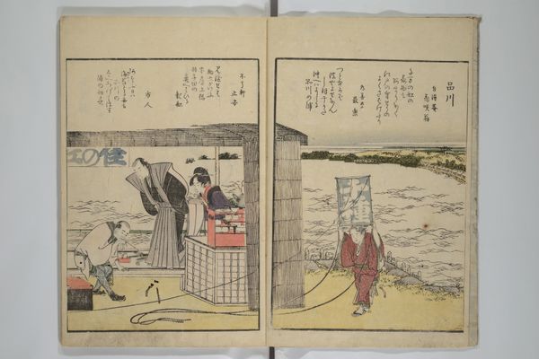 This is “A Picture Book Mirror of Various Occupations” by Hishikawa Moronobu, a woodblock print from the Edo period. Moronobu was a key figure in establishing ukiyo-e, or "pictures of the floating world," as a distinct art form. This page offers a glimpse into the daily lives and social hierarchy of 17th-century Japan. The image on the left depicts the labor of crafting blinds, while the right side presents a scene of leisure, possibly a tea ceremony. The presence of both male and female figures prompts questions about gender roles and social interactions within these different occupations. The "floating world" evokes a sense of ephemerality and pleasure, reflecting the changing social dynamics of a burgeoning urban culture. Moronobu's work, by representing a diverse range of social classes, both mirrors and shapes perceptions of societal roles. The emotional undercurrent lies in the contrast between labor and leisure, inviting us to consider the human experience across different strata of society.