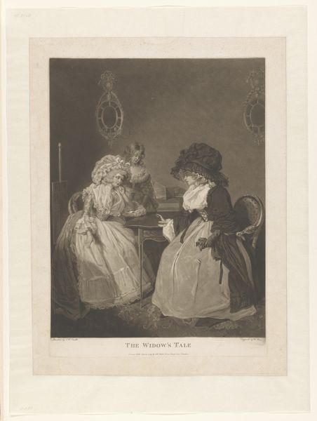 Curator: Goya’s print, "Pretty Teachings," depicts two women seated, seemingly in conversation. There’s a definite contrast in their appearance and demeanor. Editor: It’s stark, isn't it? The etching itself feels quite raw. You can really sense the artist’s hand in the marks, the layering of the aquatint. Curator: Absolutely, and that process is key. Goya was experimenting with these techniques to capture nuances of light and shadow, which here, I think, emphasizes the social disparity. Editor: I see it as a commentary on the power dynamics between women, particularly within the context of societal expectations and the transmission of knowledge and beauty ideals. There is an older woman, cloaked in shadow, whispering to a younger, more adorned woman. The younger woman has agency to break free from tradition. Curator: Or is she trapped by its material excesses? Look at the adornment on her clothing. Editor: Perhaps both, simultaneously. Curator: Ultimately, Goya used these prints to question the underpinnings of his society, using accessible materials and reproducible formats to reach a wider audience. Editor: Making his critiques all the more potent in their accessibility. It's a bold statement, even now.