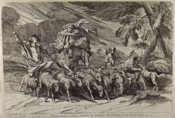 Editor: This is Melchior Küsel's "Triumph Scene," an engraving. The sheer density of figures gives it an overwhelming feel. What kind of narrative or symbolism do you see at play here? Curator: The triumph, a powerful visual trope throughout history, is here rendered with meticulous detail. Consider the horses, symbols of power and conquest, or the central figure elevated on a highly decorated chariot. What memories do such images evoke, and what cultural continuity do they suggest? Editor: The idea of cultural memory really resonates. It’s like the artist is tapping into a long history of triumphant imagery. Curator: Precisely. And how does understanding that lineage change your perception of the piece? Editor: It makes me think about how power is constructed and visualized across different eras. Thanks! Curator: Indeed. The symbols persist, but their meanings evolve. Something to consider moving forward!