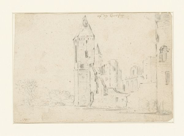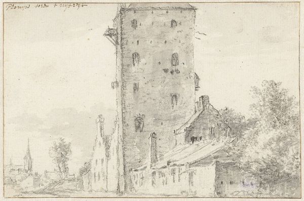 Cornelis Pronk created this drawing of the Ruin of the Abbey at Rijnsburg with pen in gray ink and brush in gray wash. The composition immediately draws our eye to the abbey's skeletal structure, defined by stark lines against a light background. Pronk uses a monochromatic palette, emphasizing form and texture. The crumbled walls and soaring tower evoke a sense of time's relentless passage and the vanity of human endeavor. The play of light and shadow across the ruin’s surfaces adds depth, creating a visually arresting image. The texture of the stone, rendered with precision, contrasts with the smooth sky, inviting contemplation on themes of decay and memory. This aesthetic rendering transforms a historical site into a meditation on mortality. The precise detail and emotional depth transform the ruin into a spectacle, inviting us to contemplate the passage of time and the complex interplay between destruction and aesthetic appreciation.