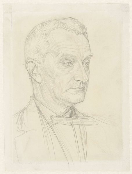 Jan Veth rendered this portrait of Professor J.P. Kuenen with graphite on paper. The choice of such modest materials speaks volumes. Graphite, essentially pencil lead, is commonplace and easily accessible. Its use here, rather than a more 'noble' medium like oil paint, suggests a deliberate informality. The artist coaxes subtle variations in tone from the graphite, using its inherent smoothness to describe the professor’s features with understated elegance. You can see the quick, light strokes, indicative of a study or preparatory sketch. The visible lines and the bare paper around the edges lend an immediacy, as if we're witnessing the artwork in progress. The artist’s approach invites us to reconsider traditional hierarchies between sketch and finished work, between the intimacy of craft and the grand pronouncements of fine art. Ultimately, the drawing’s social significance lies in its ability to distill character through the simplest of means.