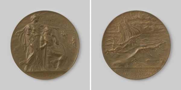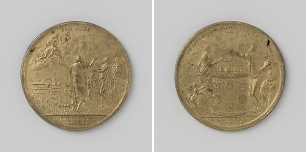 Editor: Here we have a bronze medal of Louis XI of France, dating from the 15th century, by an unknown artist. I find the imagery on both sides quite striking. How do you interpret this work? Curator: This medal presents two distinct symbolic portraits. Louis, on one side, appears with an almost severe realism, a departure from idealized depictions. The reverse, with the seated figure of France offering a branch, speaks of prosperity and continuity. Editor: Continuity? Curator: Yes, continuity. Medals like these served to cement the image of the ruler in the minds of the populace, linking his reign to lasting prosperity and, implicitly, legitimizing his power through visual association with classical virtues. It's fascinating how these symbols evolve and persist, isn't it? Editor: Absolutely, seeing the historical context through these visual cues really brings it to life. Thanks! Curator: My pleasure. Every symbol carries a story.