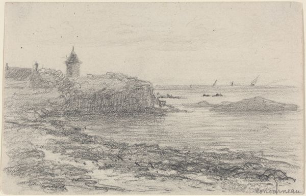 Adolf le Comte sketched this view of Woudrichem with pencil and charcoal. The composition is divided between the dark mass of land on the left and the silhouette of the city against the horizon on the right. The distant city beckons, marked by the tower, a symbol of stability, safety, and community, emerging from the skyline, which echoes the classical cityscapes. The tower appears throughout European art as a cultural constant. Consider its form in medieval miniatures or Renaissance cityscapes. Its prominence isn't just architectural, it's psychological. As a symbol, the tower elicits a sense of aspiration, a bridge between earth and sky that carries a deep emotional resonance, evoking our collective longing for the eternal, and the sublime. It stands as a testament to enduring human ambition.