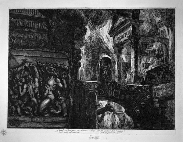 Giovanni Battista Piranesi created this print of "The Temple of Isis" using etching, a medium well-suited to capture the grandeur and decay of Roman architecture. The composition is dominated by massive columns that establish a rhythm, drawing the eye into the imagined temple's depths. Piranesi's use of light and shadow is dramatic, almost theatrical. Light rakes across the fluted surfaces of the columns, accentuating their texture, while deep shadows hint at unseen spaces, creating a sense of mystery. Note the lone figure to the right, dwarfed by the architecture. This contrast in scale emphasizes the vastness of the temple and the ephemerality of human existence. Piranesi’s approach wasn't just about recording what he saw, but reimagining the past through an eighteenth-century lens, playing with the sublime and the picturesque. The rigorous geometry of the architecture, combined with the romantic ruin, invites us to consider the interplay between order and decay, intellect and emotion.