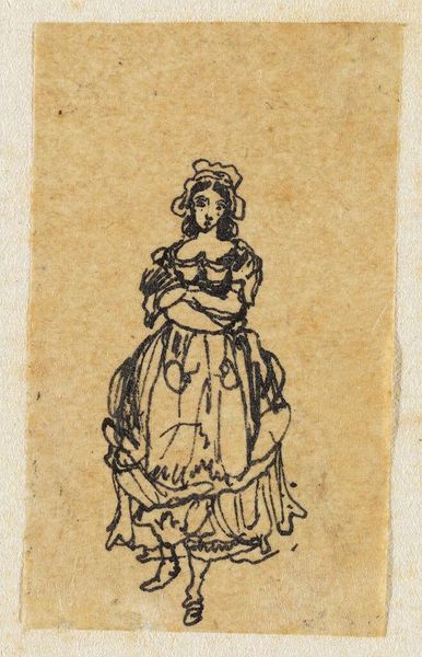 Editor: This is Rodolphe Bresdin's "Bust of a Woman with a Floral Headdress". It's quite small, just a few centimeters, and appears to be an etching. I'm struck by the contrast between the delicate details of the face and the almost chaotic lines of the dress. What can you tell me about this work? Curator: Let's consider Bresdin's process. The intricate linework, likely achieved through etching, points to a time-consuming and skilled labor. How does the scale—its smallness—affect your perception of its value and the labor involved? Editor: That's interesting! I hadn't thought about it in terms of labor. Knowing it's an etching makes me appreciate the work that went into it, despite its size. Curator: Exactly. And what about the social context? Bresdin worked outside the mainstream art world. Did his position affect his choice of materials or the subjects he depicted? Editor: I hadn't considered that either. It does make me wonder if he chose etching because it was more accessible, or if the subject matter relates to his social circle somehow. Curator: Precisely. Examining the means of production offers insights beyond the purely aesthetic. Editor: I'll definitely look at art differently now, considering the "how" and "why" behind its creation.