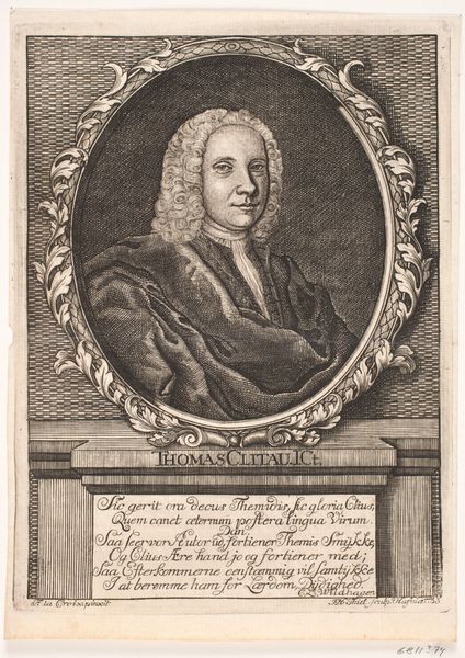 Johann Matthias Steudlin’s “Portret van Barthold Hinrich Brockes,” etched sometime between 1680 and 1747, captures the essence of its subject within the cultural context of the era. Brockes, a prominent figure of his time, is framed by an ornate oval, surrounded by text. The text hints at the power of art. The very act of portraying Brockes immortalizes him in a visual and textual narrative. Wearing the wig and garb of the period, his identity is clearly linked to his status and era. The detailed etching technique enhances the emotional presence, drawing viewers into the world of 18th-century Hamburg. The artwork reflects societal values, highlighting the importance of legacy and the intertwining of identity with artistic representation. It's a testament to how art immortalizes individuals and the values they represent.
