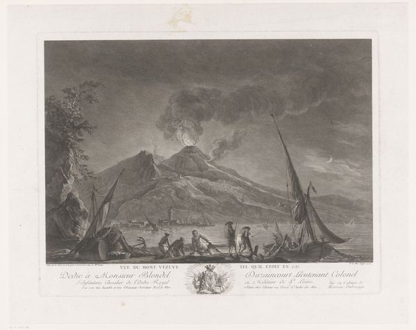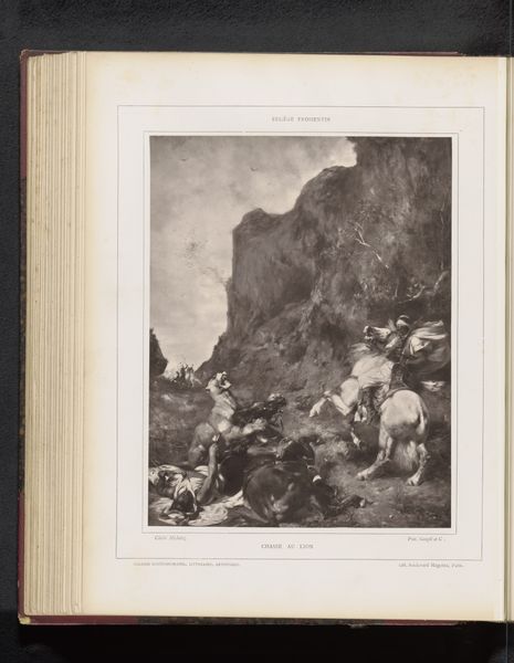 Curator: This is an albumen print, “Fotoreproductie van een prent van mensen die de Vesuvius beklimmen,” by Giorgio Sommer, created before 1879. It resides here at the Rijksmuseum. It looks to me as if the artist documented the act of ascending Mount Vesuvius in Italy during that period. Editor: What immediately strikes me is the stark contrast between the dark, smoky peak and the lighthearted leisure activity occurring on its slopes. It's like a dance between destruction and recreation, a commentary perhaps, on the oblivious nature of privilege. Curator: Indeed, and consider Vesuvius itself—a loaded symbol. For centuries, volcanoes have signified divine wrath and the precariousness of human existence, a reminder of forces far beyond our control. Its placement at the core hints at our paradoxical fascination with danger. Editor: Precisely. Note the romanticized depiction of these travelers, seemingly unfazed, against the backdrop of an active volcano. The romanticism present is hard to ignore, though I wonder how many of these tourists were aware of the colonial underpinnings of tourism. Access like this rarely exists without exploiting local labor. Curator: Certainly, these fashionable figures—carefully posed, meticulously dressed—convey an idealised vision, a carefully constructed tableau rather than a spontaneous scene. I suspect this is not accidental at all; note that this particular work captures the essence of a fleeting moment yet freezes it indefinitely through photographic art. Editor: That freezing transforms the active volcano, that is in its essence change, flux, a material that shifts under human activity, into just another backdrop. What gets centered is a moment of fashionable leisure and consumerism in a dangerous place. How complicit is the artist in it? Curator: Well, the print could itself be interpreted as another symbol of commodification – turning the grand tour into a portable keepsake. It brings this exotic journey home and shares it as both proof and prize. Editor: So, we could be seeing layers here: first, that landscape's representation of both power and the sublime, its visual manifestation captured through the print as it caters to Europe's expanding tourism industry, its power consolidated within that tiny printed rectangle that also displays class. It creates its own closed, self-validating world. Curator: Agreed, but it does open up discussion and the potential for varied meanings too. Editor: Of course; viewing the work, for me, brings awareness to some complex connections around privilege and power—I’ll carry those observations with me. Curator: Yes, a rich tableau indeed – this brief stop reminds us to look for multiple interpretations within iconic symbols, and cultural narratives.