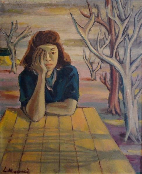 Gandy Brodie made "The Penetration of a Thought" with visible brushstrokes that really let you track his process. The colours seem muted, kind of like a memory fading in and out. Looking closely, the texture is built up with layers – you can almost feel the push and pull of his hand, especially in the way the purple and pink mix in the figure’s dress. It’s like he’s not just painting a picture, but also painting the feeling of being lost in thought. That stroke of grey right above her head? It’s so direct, so raw, that you can imagine the energy of the moment he made it. Brodie reminds me a bit of Milton Avery, especially in the way they both use simplified shapes and colours to suggest deeper emotions. But where Avery feels calm, Brodie's got this restless, searching quality. It's art that invites you to bring your own feelings and experiences to the table.