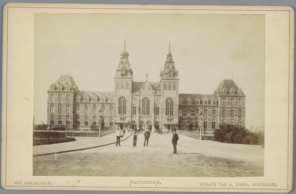 Andries Jager captured the exterior of the Paleis voor Volksvlijt in Amsterdam using photography. The building's architecture showcases prominent columns, capped by a dome, which echoes classical temples. These elements harken back to ancient Greece and Rome, societies celebrated for their democratic ideals, philosophy, and artistic achievements. The dome, in particular, carries profound symbolism. Throughout history, domes have represented the cosmos, divinity, and the seat of power, from the Pantheon in Rome to Renaissance cathedrals. In this context, the dome crowning the Paleis voor Volksvlijt elevates the building to a symbol of progress and national pride. Reflecting on our collective memory, these architectural forms tap into a deep-seated desire for order and stability. The Paleis voor Volksvlijt uses these forms to project an image of prosperity and cultural authority, inviting viewers to see industry as a noble pursuit, connecting it to the grandeur of historical empires and the promise of a bright future.