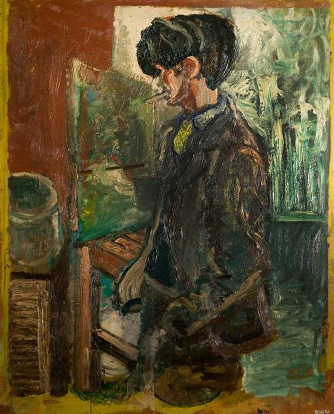 Henri de Toulouse-Lautrec painted Monsieur Louis Pascal from the Rear using oil on cardboard, a readily available and affordable material choice for the time. The rough texture of the cardboard support peeks through the thin layers of paint, creating a sense of immediacy. Look closely, and you'll notice how the brown of the board serves as a base tone, influencing the overall palette. Lautrec’s loose brushstrokes, especially in the rendering of Pascal’s coat and trousers, suggest a rapid execution, as if capturing a fleeting impression. The somewhat subdued tones and the subject's turned back create a sense of distance, almost anonymity. There’s a directness to the painting, reflecting the artist’s engagement with contemporary life and, perhaps, the material realities that shaped artistic production in a rapidly changing world. Paying attention to these material aspects, like the cardboard support and the suggestive brushwork, allows us to appreciate how Lautrec elevated everyday materials and techniques to create a lasting work of art, challenging traditional notions of fine art.