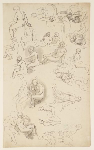 Edward Burne-Jones created this drawing titled "Female Nude – Five Studies" using a red chalk. Notice how the composition is organized around five distinct poses of the female form, each rendered with delicate lines and subtle shading. The poses explore different aspects of the human form, from the seated figure to the reclining one, capturing the interplay of light and shadow across the body. Burne-Jones's strategic use of line weight and hatching creates a sense of depth and volume, while the limited color palette emphasizes the purity of form and the artist's skillful handling of the medium. The arrangement of the figures across the paper creates a dynamic visual rhythm, drawing the eye from one pose to the next. Burne-Jones's classical influences are evident in the idealized proportions and graceful contours of the figures. Through these formal elements, the artwork invites us to contemplate the beauty and complexity of the human body.
