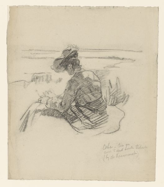 James McNeill Whistler made this small etching, "In de volle zon", translated to "In the Full Sun," sometime in the late 19th century. It presents a seated woman with an umbrella, seemingly in a field. Born in America, Whistler spent much of his career in Europe, navigating the social circles of artistic and literary figures. He was a key proponent of ‘art for art’s sake’, and his works often prioritize aesthetic arrangements over narrative content, challenging the traditional academic art world of his time. Consider the title. Whistler, in a move typical of his aestheticism, gives us not a clear story but an atmospheric sensation. The woman becomes a figure in a composition of light and shadow. To understand Whistler fully, we delve into exhibition histories, critical responses, and artist manifestos of the time. These resources help us appreciate art as a product of its cultural moment, shaped by the debates and institutions that defined its era.