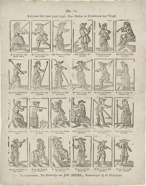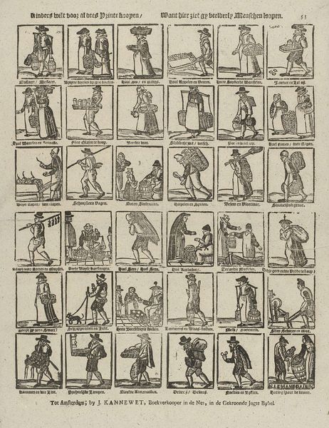 This print, made by Erven de Weduwe Jacobus van Egmont, presents us with a tableau of figures, each frozen in a moment that speaks volumes about their station and purpose. Consider the motif of the 'fool’. We see a man with a bladder stick. This figure has echoed through time, a reflection of our anxieties about order and chaos, sense and nonsense. The fool transcends mere entertainment; he becomes a mirror reflecting society's own follies. The visual tension is palpable. Each image vibrates with the psychological weight of its cultural baggage. It's as if the collective unconscious has found expression, engaging viewers on a deep, subconscious level. These symbols are not static; they shift and evolve. The fool, for example, may once have been a simple entertainer, but over time, he becomes a figure of profound social commentary. This non-linear progression allows symbols to resurface, evolve, and take on new meanings in different historical contexts.